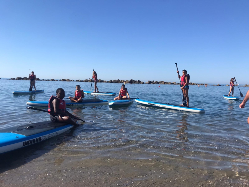 Nell’ampio arenile si trovano i campi di beach volley, disciplina molto apprezzata dai giovani, su cui bambine e bambini trascorreranno momenti di puro divertimento. Al mare e in piscina sarà possibile praticare il SUP, disciplina acquatica che consiste nella capacità di mantenersi in equilibrio su una tavola da surf, pagaiando su una superficie d’acqua. Inoltre la programmazione prevede moduli dedicati alle discipline sportive di squadra più note come calcio, basket e volley. Allo sport si affiancherà un percorso teatrale, un progetto espressivo che unisce i linguaggi della recitazione e dell’improvvisazione teatrale integrandoli nel contesto della vacanza. Durante il soggiorno sono inoltre previste sia escursioni naturalistiche che visite guidate nei principali centri urbani. Tra le possibili proposte segnaliamo l’ingresso al Centro Sub Alto Tirreno, la visita all’Agrifattoria di Filattiera, l’escursione a Pontremoli con l’attività allo scavo archeologico e la passeggiata a Carrara.